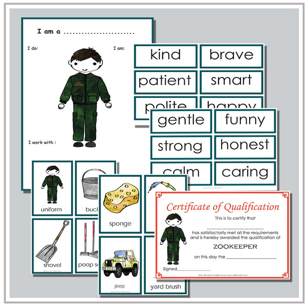 Our printable Zoo resources are designed to complement our Zookeeper uniform and are available for free with a purchase of a Zookeeper uniform.